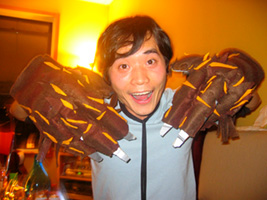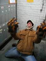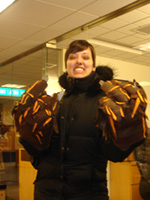 Today he had Wolfie Gloves.